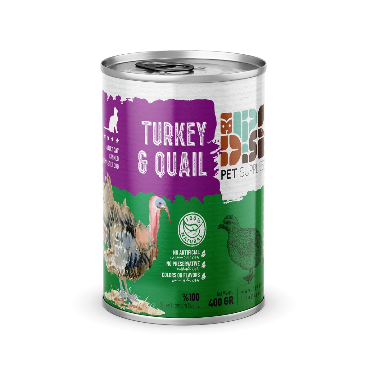 كنسرو نچرال بوقلمون و بلدرچين گربه بالغ 400 گرمي dps