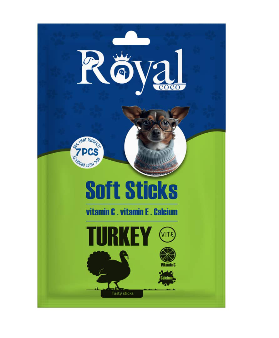 تشويقي مدادي نرم مخصوص سگ 7 عددي طعم بوقلمون Royal coco