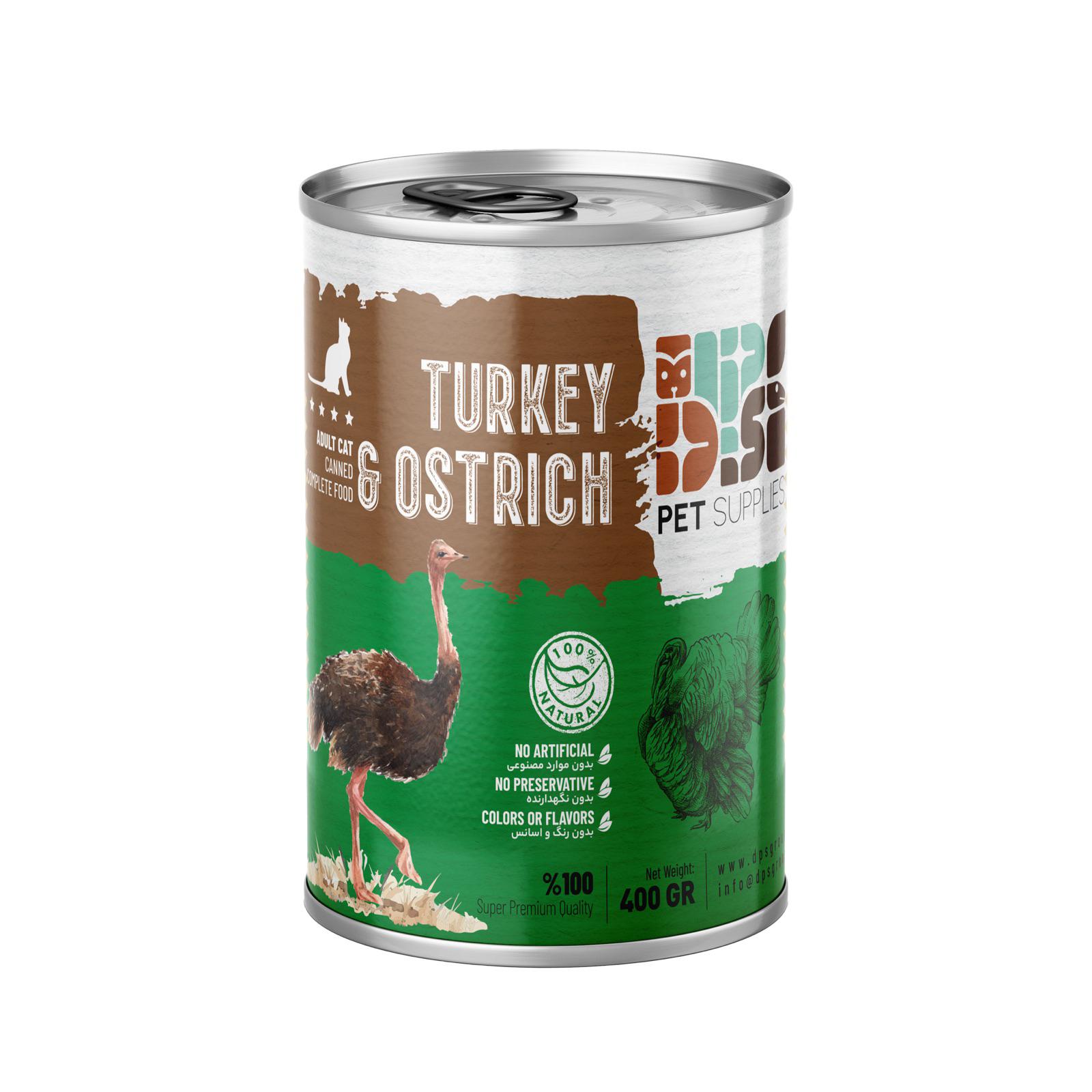 كنسرو نچرال بوقلمون و شتر مرغ گربه بالغ 400 گرمي dps